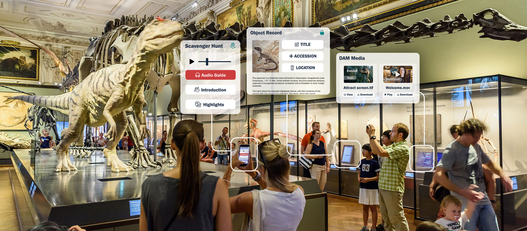 Activate the public with mobile guides, scavenger hunts, in-gallery touchscreens, online exhibitions, and distance learning.