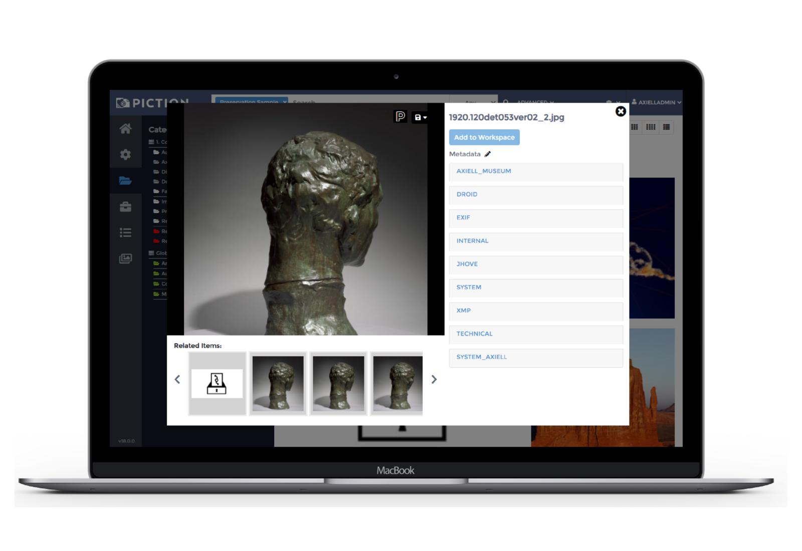 Axiell DAMS – Powered by Piction vereinfacht die Arbeitsabläufe zwischen Sammlungsmanagern, Kuratierenden, IT- und Digitalabteilungen und führt Sammlungsdaten sowie digitale Medien zusammen, um die Grundlage für rundum digitale Prozesse zu schaffen.