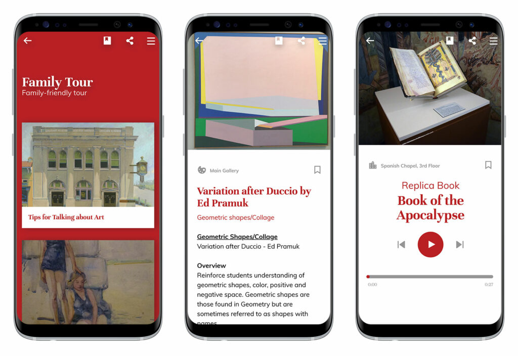 While exploring AMoA’s permanent collection and special exhibits, visitors can not only experience interpretive tours, but also they can engage with the mobile guide’s Educator Tools and Family Tour. Not sure how to interpret a painting or speak about a sculpture with your children? The museum staff has filled the mobile guide with tips, tools, and conversational prompts throughout the experience to support and enhance each person’s onsite visit.