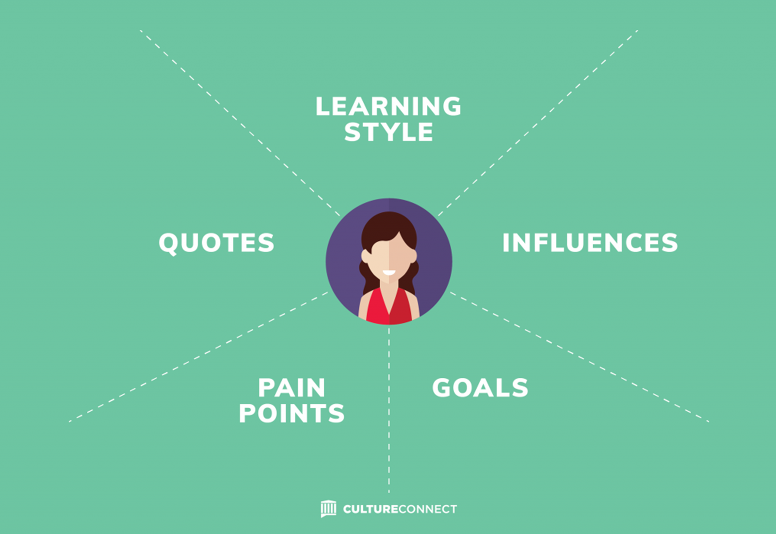Discussing Goals and Pain Points is highly informative in our work. We aim to understand what a user is trying to accomplish and what obstacles may prevent them from reaching their goals. We include Influences as a way to understand what may be indirectly affecting what the visitor thinks or does. Finally, we include Learning Style, or how this visitor likes to consume information, as this is significant when you’re talking about multimedia and technology (as a museum professional using software or a museum visitor using a digital interactive).